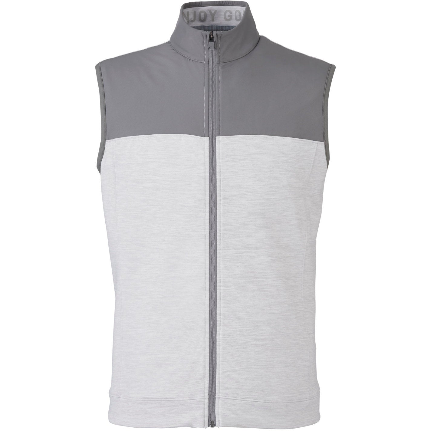 9.17 oz., 87% recycled polyester, 13% elastane; Moisture-wicking; UV resistant 40+ UPF; Four-way stretch; Heathered Cloudspun body with coloblocked woven panel; Full-zip